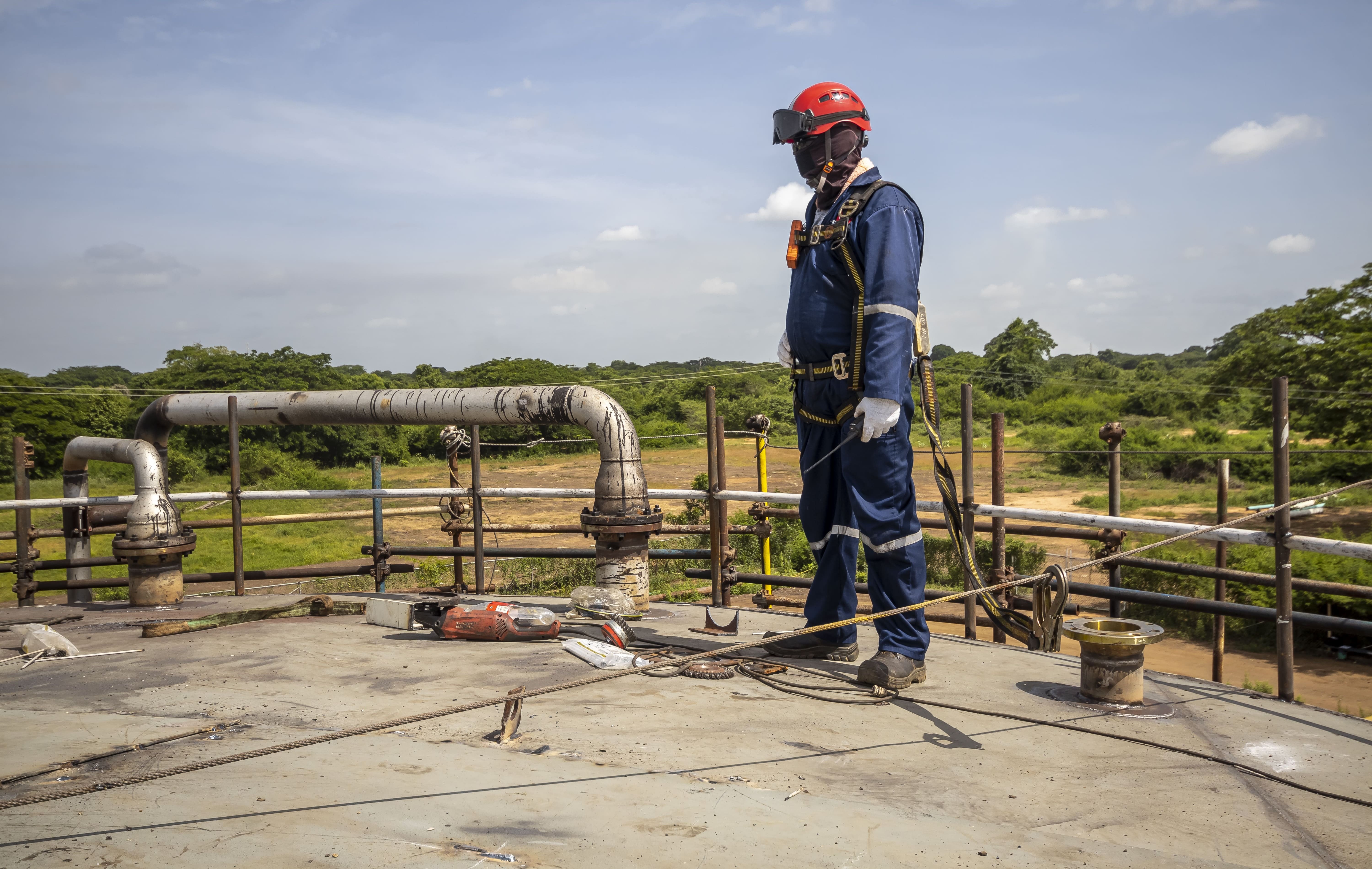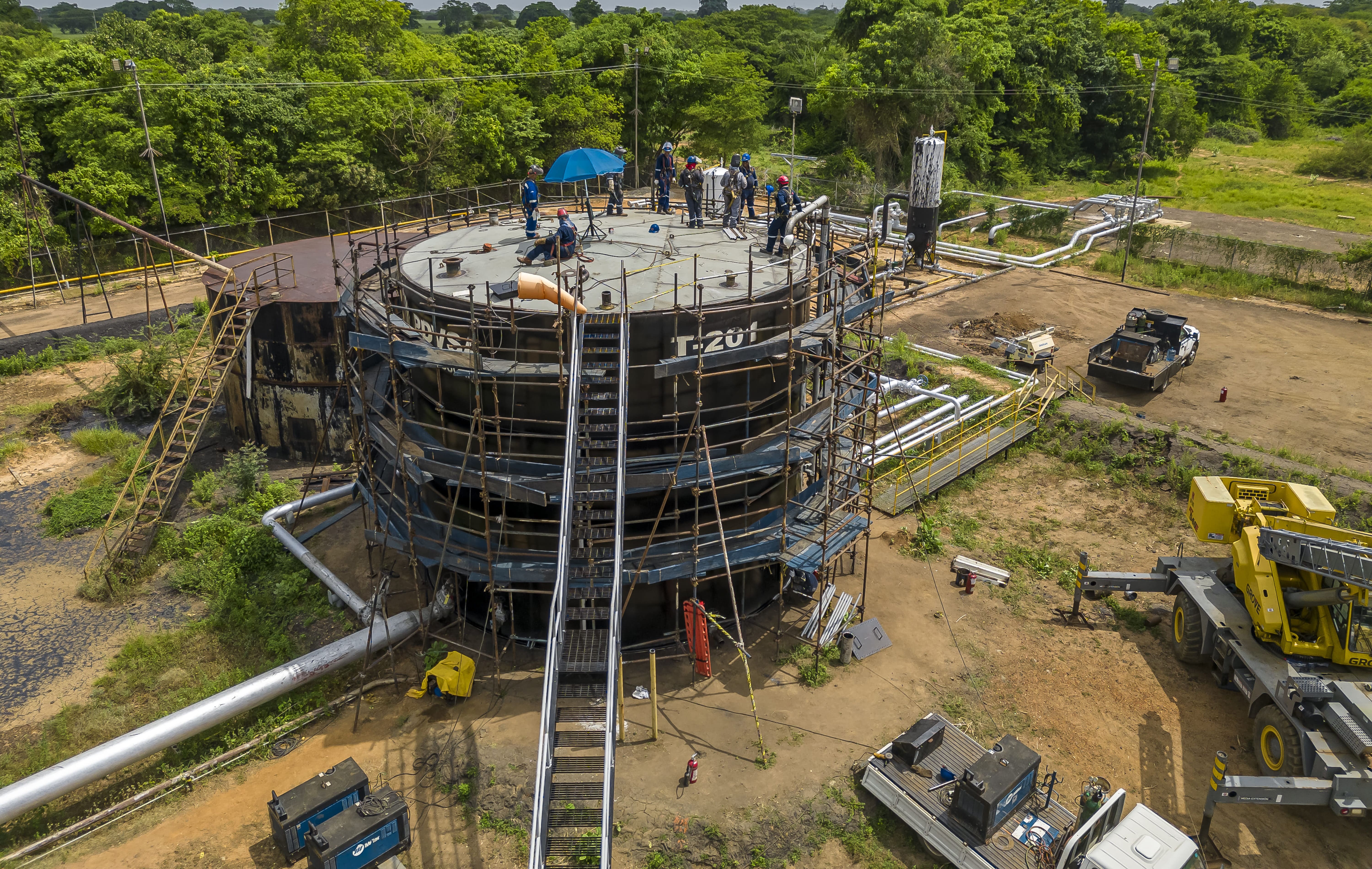 Limpieza de superficies Abiertas. • Limpieza de superficie en espacio confinado. • Remoción de sedimentos Crudo y Agua. • Pintado de Superficie Interna, Externa y Escaleras del Tanque. • Reparación de Escaleras del Tanque. • Remplazo de anillos del Tanque. • Remplazo de láminas del techo del Tanque. • Reparación con soldaduras varias. • Reparación con soldadura en frio.