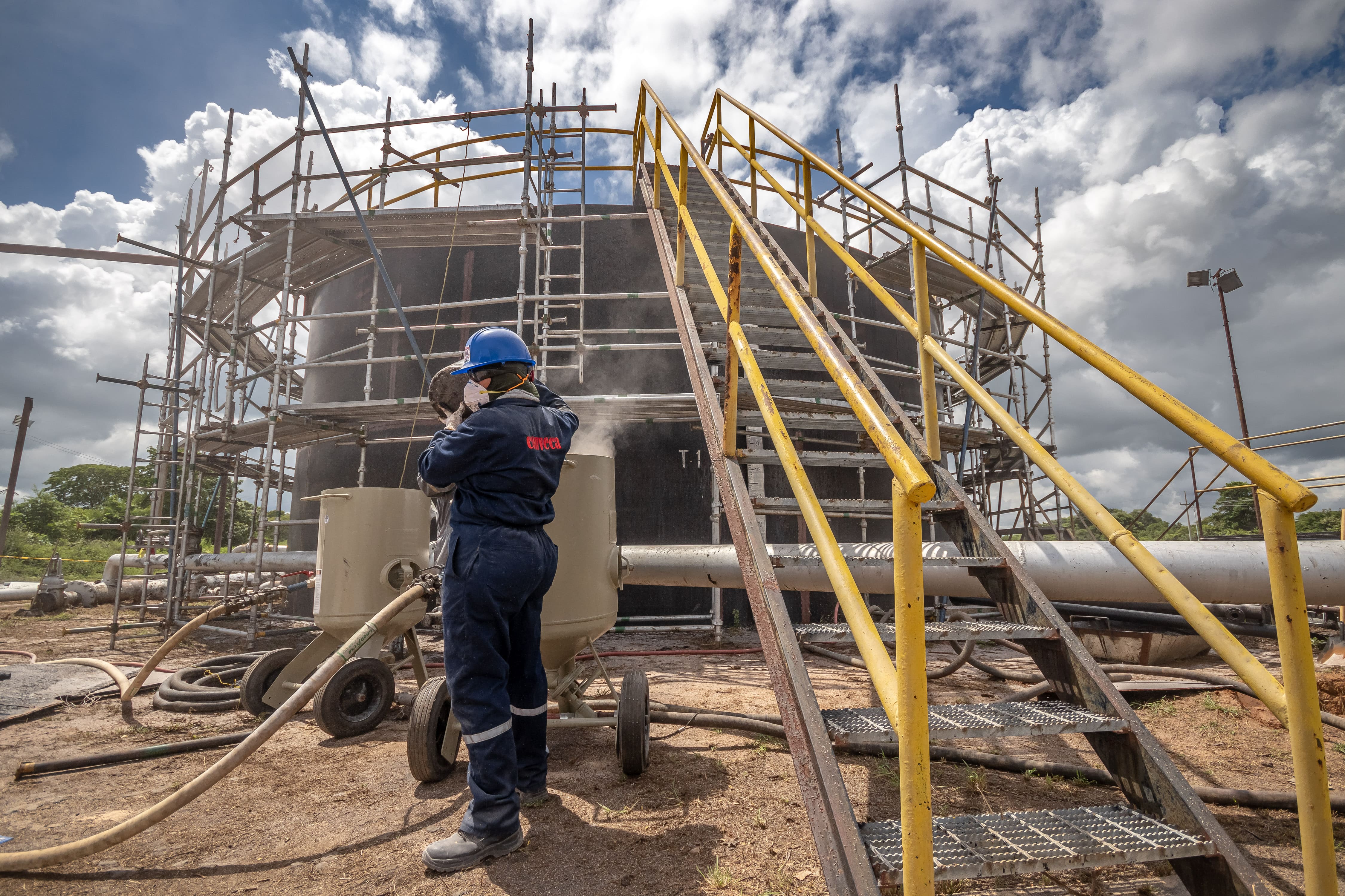 Limpieza de superficies Abiertas. • Limpieza de superficie en espacio confinado. • Remoción de sedimentos Crudo y Agua. • Pintado de Superficie Interna, Externa y Escaleras del Tanque. • Reparación de Escaleras del Tanque. • Remplazo de anillos del Tanque. • Remplazo de láminas del techo del Tanque. • Reparación con soldaduras varias. • Reparación con soldadura en frio.